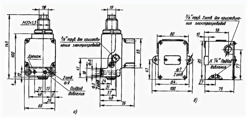 Габаритные размеры реле давления Г62-11, ПГ62-11, БПГ62-11, ВПГ62-11, ГПГ62-11, Г62-21М