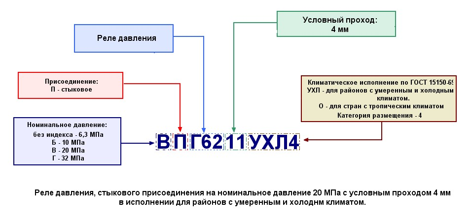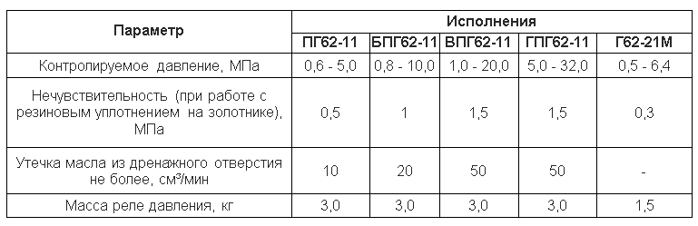 Параметры реле давления ПГ62-11, БПГ62-11, ВПГ62-11, ГПГ62-11, Г62-21М
