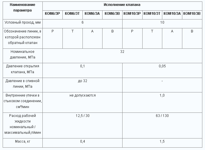 Гидроклапаны обратные модульные КОМ6/3 и КОМ10/3 применяются в гидролиниях, где требуется свободное пропускание потока рабочей жидкости в одном направлении и запирание потока рабочей жидкости в противоположном направлении.