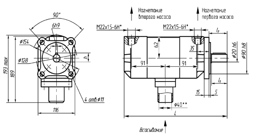 Габаритные размеры гидронасоса НПл8-8/6,3