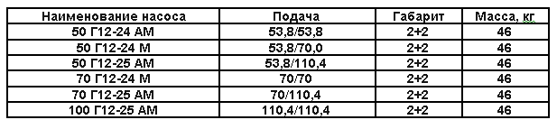 Насосы пластинчатые нерегулируемые 50Г12-24АМ, 50Г12-24М, 50Г12-25АМ, 70Г12-24М, 70Г12-25АМ, 100Г12-25АМ (габ. 2+2) работают на минеральных маслах марок ИГП-38, ВНИИ НП-403 или аналогах с характеристиками: температура масла от минус 10 до +50оС; кинематическая вязкость масла от 20 до 400 мм2/с.тонкость фильтрации 25 мкм. Частота вращения вала насосов: 960 об/мин. Направление вращения вала - правое (по часовой стрелке со стороны привода). По заказу потребителя поставляются насосы с левым направлением вращения.
