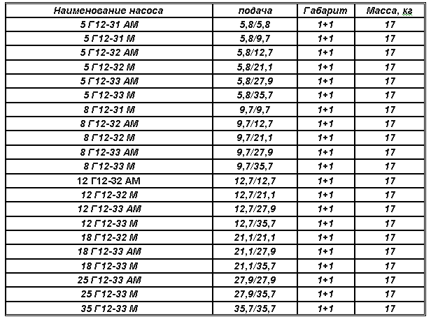 Насосы нерегулируемые типа Г-12- применяются в гидроприводах металлорежущих станков и других машин, где требуется давление до 6,3 МПа и нерегулируемый по величине поток минерального масла.