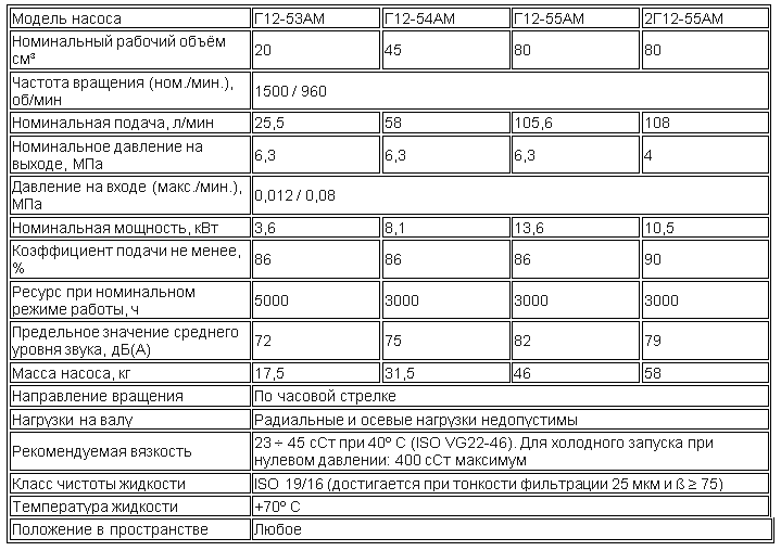 Насосы Г12-5..М имеют два вида исполнения по способу изменения рабочего объёма: