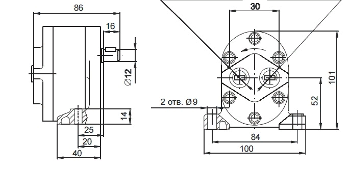 Габаритные и присоединительные размеры шестерённых насосов типа Г11-11(А)